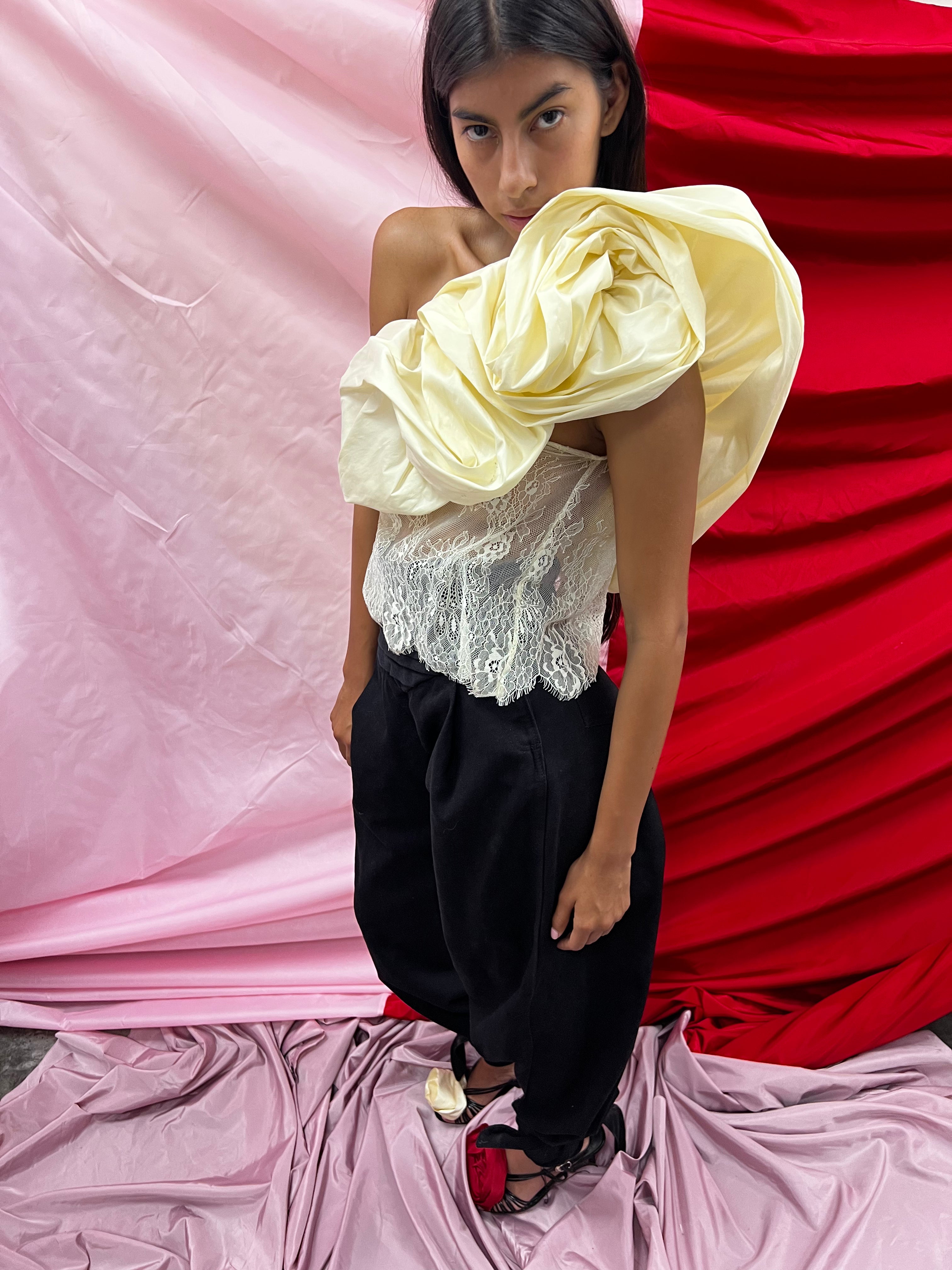 By Efrain Mogollon's Ola Jean pants feature the brand's signature tailoring, balancing volume with structure. These pants feature a cinched high-waist cut with ruching detail across the waistline and two side pockets. The balloon leg shape is tapered at the ankle for a sophisticated take on harem pants.